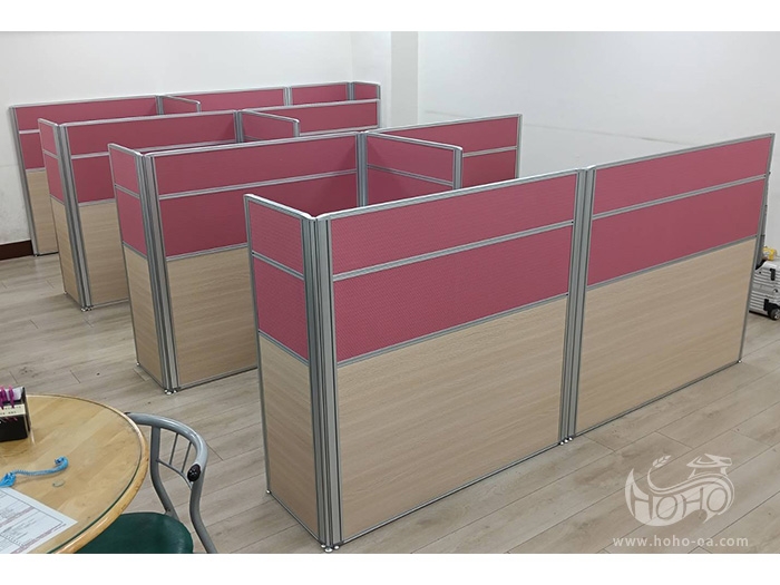 2.5公分屏風 高度:120CM (+2CM調整腳) 邊骨顏色:銀 表板配置:70鋼板面貼波音皮-30鋼板面貼布-20鋼板面貼布 以2.5公分屏風組合成櫃台形式,區分出內外兩個空間 並同時以120CM的高度增添洽談隱私性 ※ 屏風尺寸及表板配置可依需求配置 ※ 波音皮色卡顏色多樣可選 ※ 屏風多種形態搭配,可變化不同樣貌