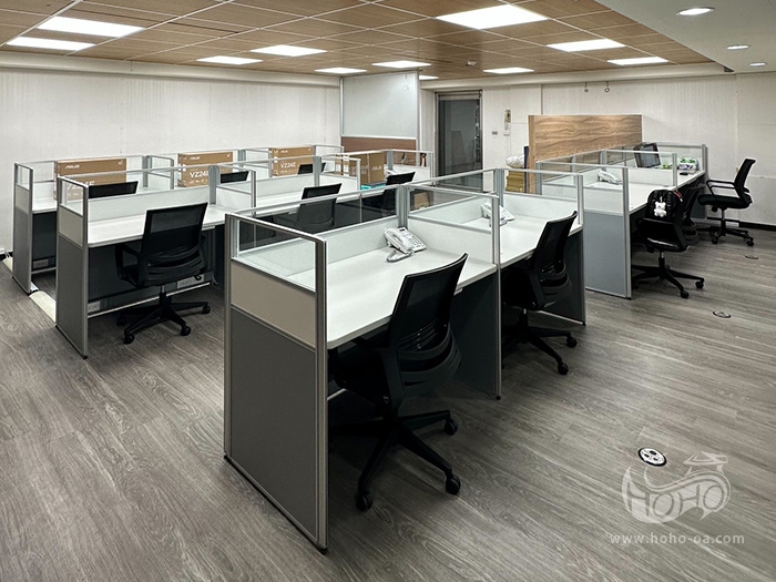 2.5公分屏風 高度:110CM (+2CM調整腳) 邊骨顏色:銀 表板配置:70銀色平面鋼板-20優美白色平面鋼板-20清玻璃 座位寬度:120CM 使用905淺灰色桌板,以灰白的色系帶出簡約俐落感 搭配 C68103 中型網布辦公椅(全黑款) ※ 屏風尺寸及表板配置可依需求配置 ※ 波音皮色卡顏色多樣可選 ※ 屏風多種形態搭配,可變化不同樣貌